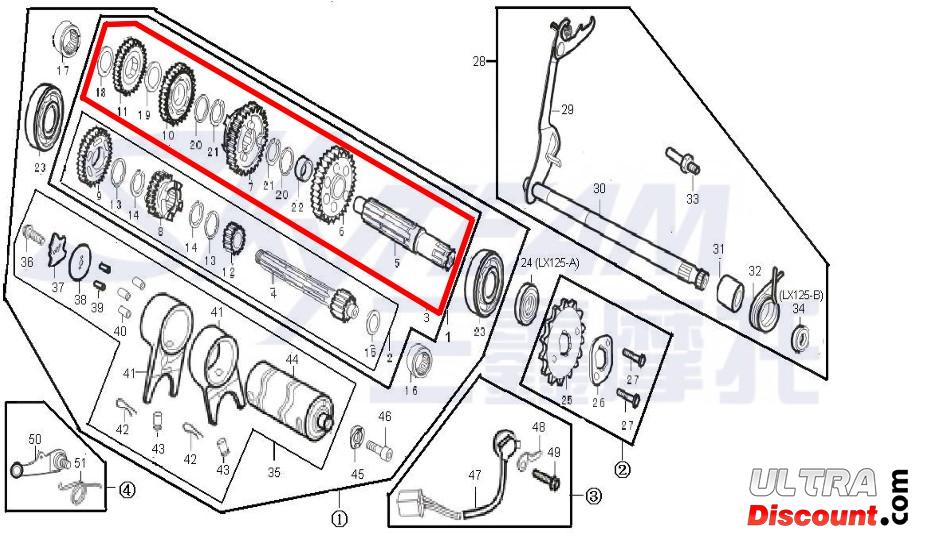 Arbre auxilliaire pour moteur 125cc pour Bubbly Skyteam Description