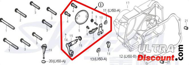 Commande d'embrayage et cache 50cc pour Bubbly Skyteam Description