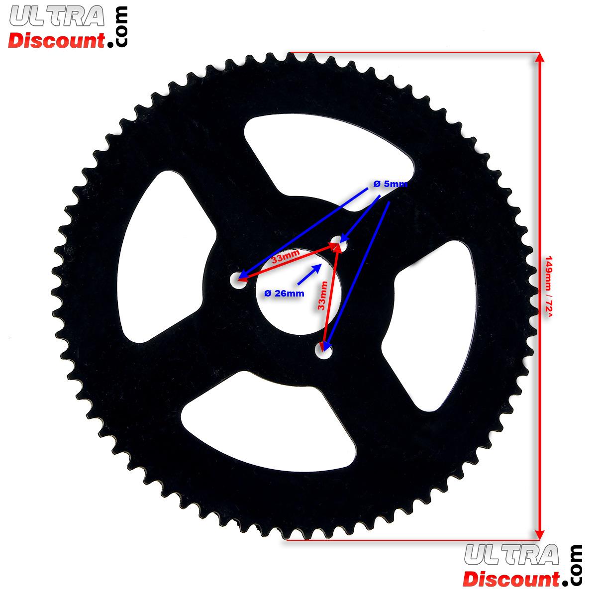 Couronne Renforcée 72 Dents 3 Trous pour Chaine Petit Pas de Pocket Bike MTA4 (4 Branches) Description