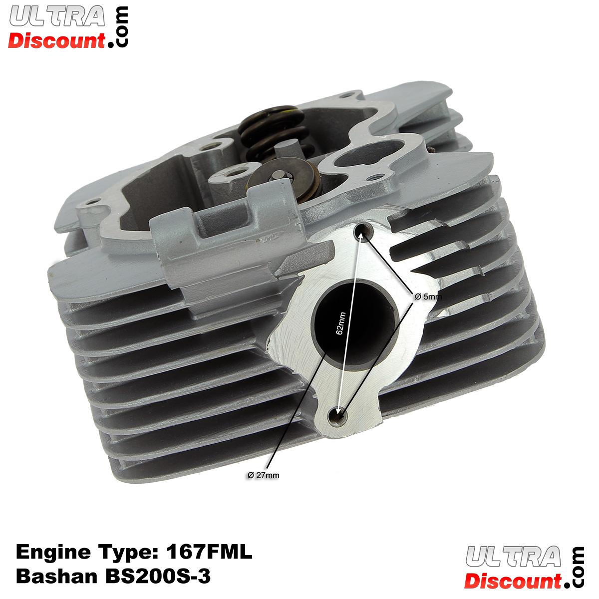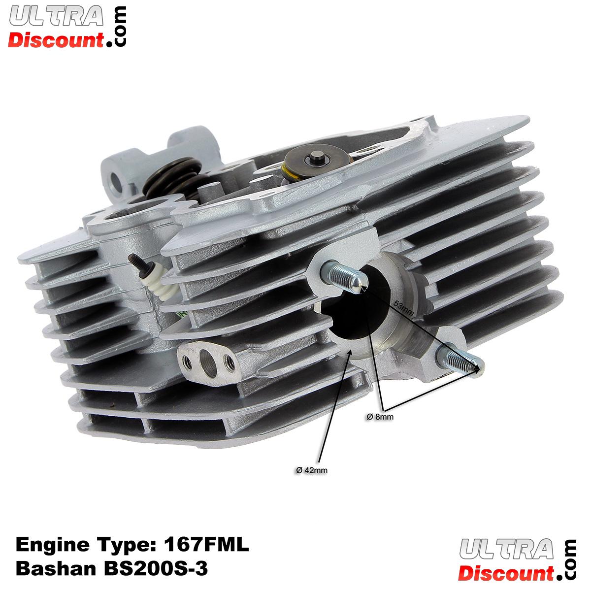 Cette culasse est destinée aux moteurs 200cc de type 167FML pour quads Bashan BS200S-3 et BS200S-3A.