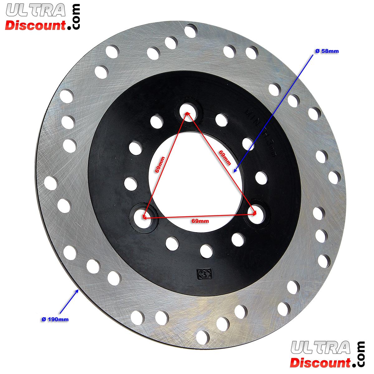 - entre-axes entre les 3 vis de fixation du disque : 69 mm,