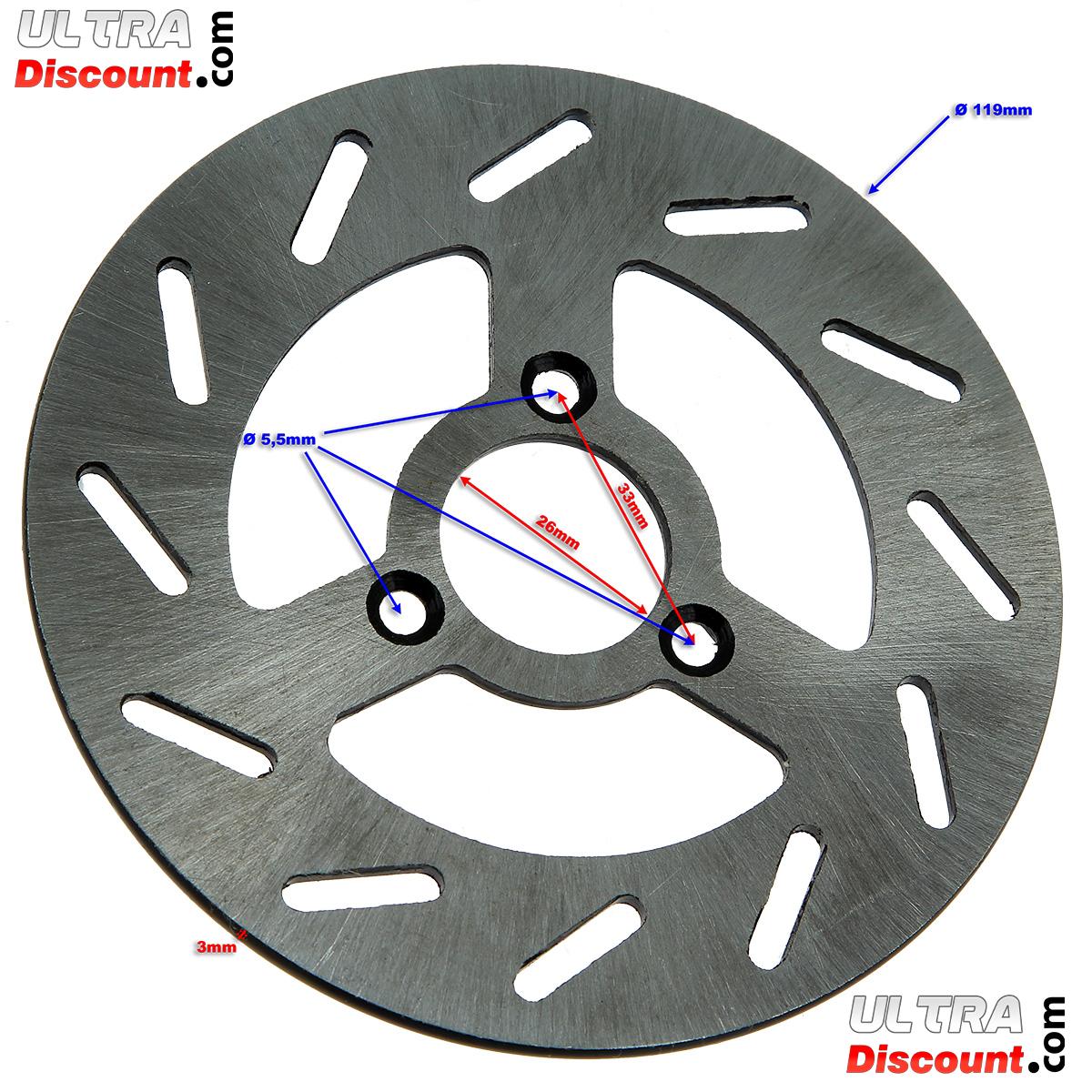 Fixation par 3 trous de diamètre 5,5mm chanfreinés à 45°.