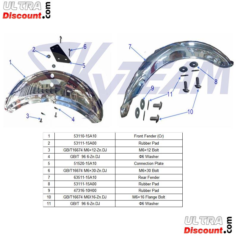 Garde boue Avant CHROME pour Skyteam Skymini Skybongo et LeMans: