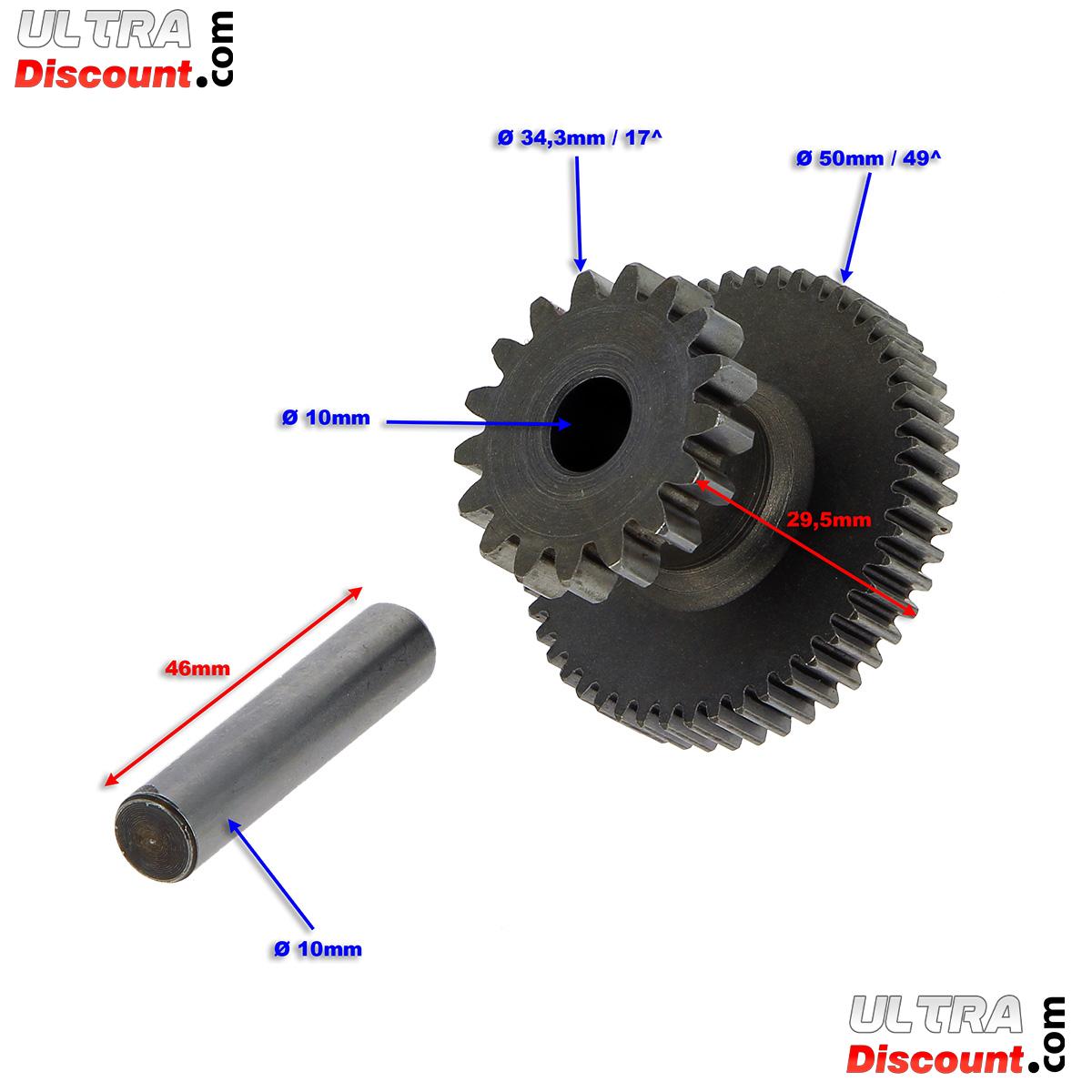 Pignon Intermédiaire de Démarreur avec Axe pour Scooters Chinois GY6 125cc Description