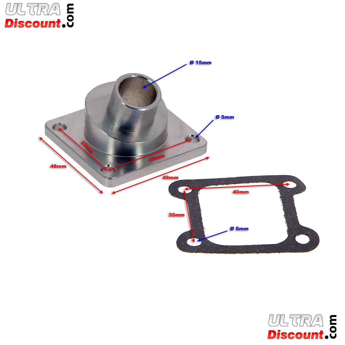 Cette pipe de 15mm fabriquée à la commande numérique est destinée aux moteurs de pocket 47cc ou 49cc possédant un kit carburateur de 15mm.