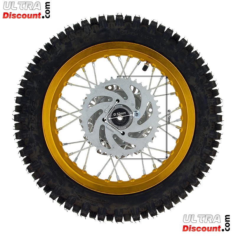 Roue Arrière Complète 12'' Or avec Crampons 12mm pour Dirt Bike AGB27 Description