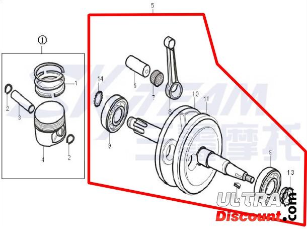 Vilebrequin pour moteurs 125cc pour Bubbly Skyteam Description